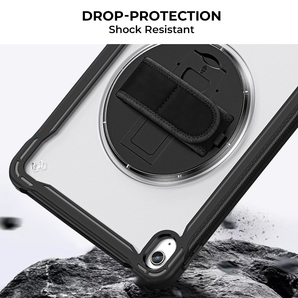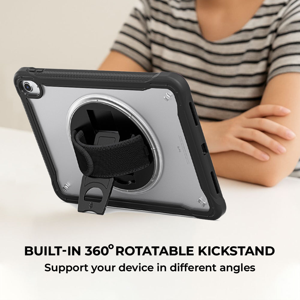 AMZER TUFFEN Clear Case with 360 Degree Rotating Holder with Hand Strap For iPad 11th Gen 11" 2025/ 10th Gen 10.9" 2022